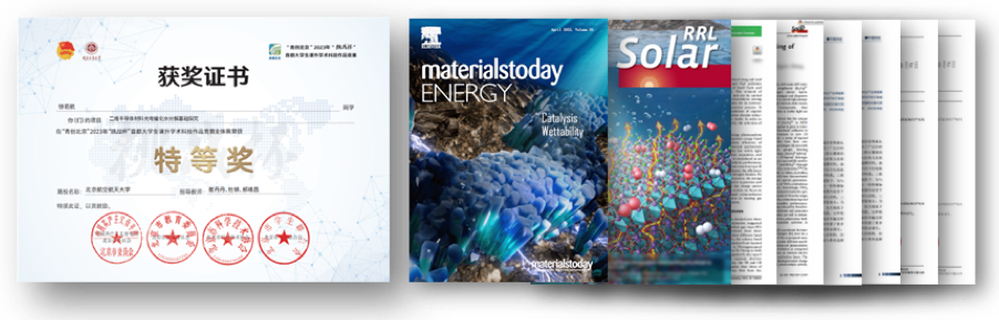 自大一起进入北航物理学院表面物理与量子物质课题组,在杜轶、郝维昌、崔丹丹三位老师的指导下针对光电催化的基础问题开展研究。历时两年,从基础研究入手,先后解决了光电催化剂催化活性低,反应稳定性差等问题,先后提出了材料插层实现能带调控、引入极化电场、微纳界面设计调控三项界面浸润性的方法,设计开发出了高效稳定的光电催化剂。本科阶段已发表4篇高水平论文,发表一年来他引14次,2项国家级发明专利已受理。