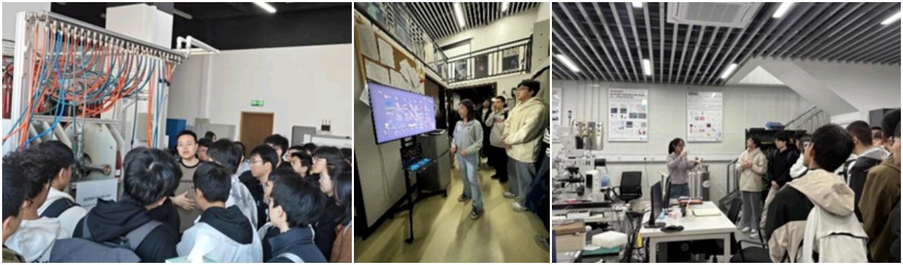 随后,同学们依次走进物理学院直线等离子体装置实验室、纳米光子学实验室、表面物理实验室等物理学科特色实验室。现场由专业教师及课题组学生为同学们对实验室建设成果进行了详细讲解,基于实验仪器的工作原理,以科普的形式展示了趣味实验现象与物理机制,充分激发了同学们对于物理学科的探索热情与好奇。