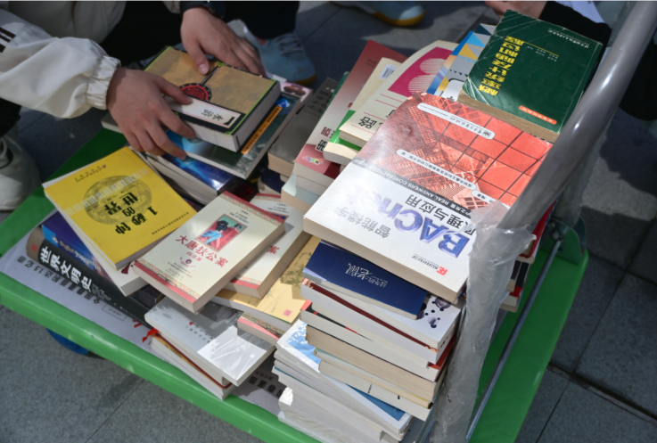 活动筹备阶段,物理学院面向全院师生发起图书征集倡议,得到广泛响应与积极支持。广大师生踊跃整理藏书,学院累计征集各类优质图书百余册。一摞摞整齐码放的书籍,承载着师生们的知识热忱与公益心意,为书市活动的顺利开展奠定了坚实基础。