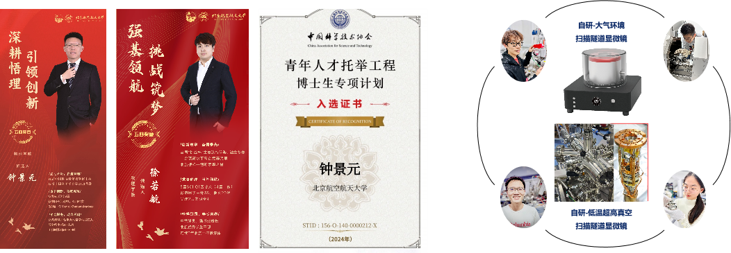 持续建设育人平台,学业导师6人,研究生思政导师4人,充分发挥导师在导学、导心、导向、导行方面的作用。团队本科生在二维材料、扫描隧道显微镜开发、低维异质结构研究等领域开展研究工作,获得包括第十六届、十八届、十九届“挑战杯”全国大学生课外学术科技作品竞赛特等奖三项(破全国纪录)、第十二届北京市大学生物理实验竞赛一等奖、北航“冯如杯”学生学术科技作品竞赛一等奖等国家级奖项3项,省部级10项。过去三年,团队研究生获得“青年托举”项目、国家奖学金、北京市优秀毕业生、北航“五四”奖章、国家奖学金、北京航空航天大学优秀博士一等奖学金、北京航空航天大学博士研究生卓越学术基金等项目及荣誉50余项。